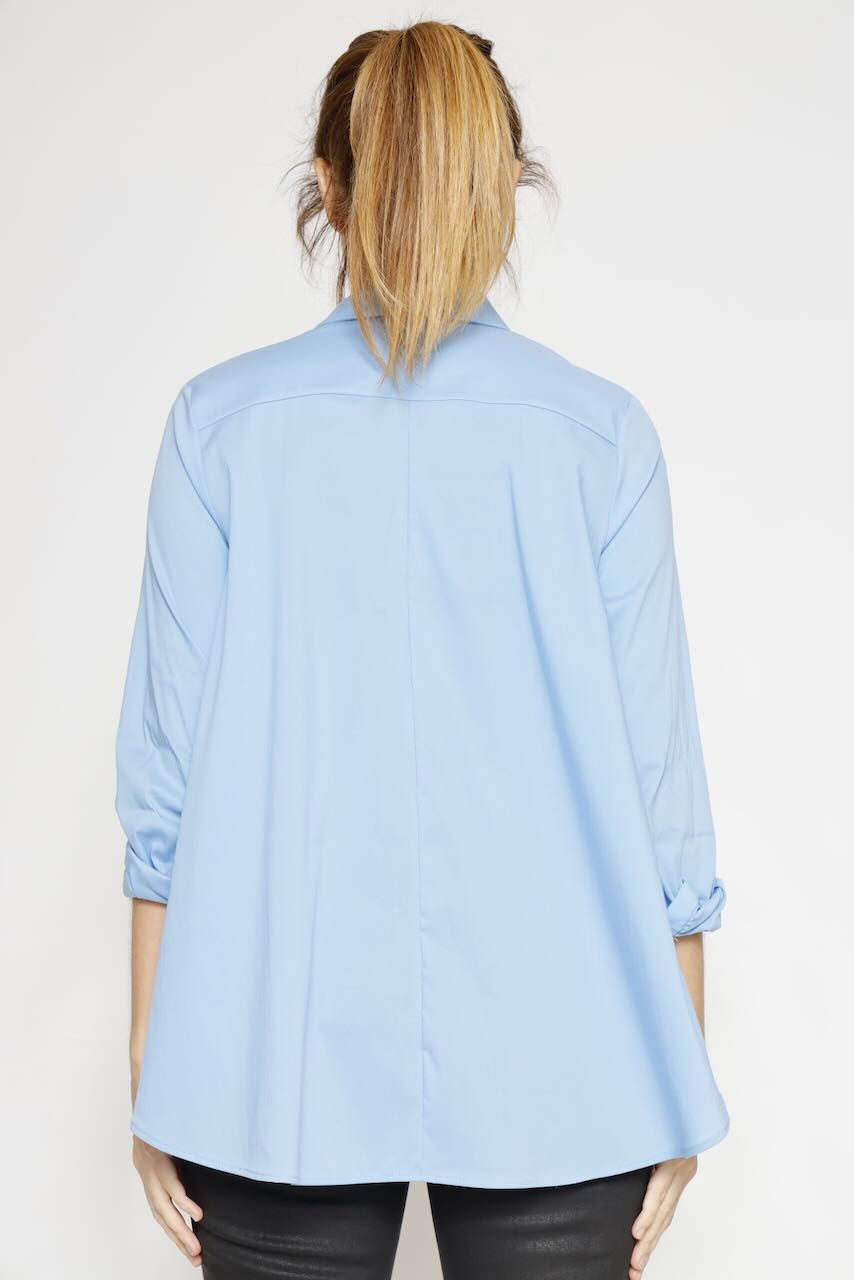 Esta camisa desestructurada en color azul claro es ideal para un look casual y moderno. Confeccionada con un 79% de algodón, 18% de nylon y 3% de elastán, esta prenda combina comodidad y estilo.