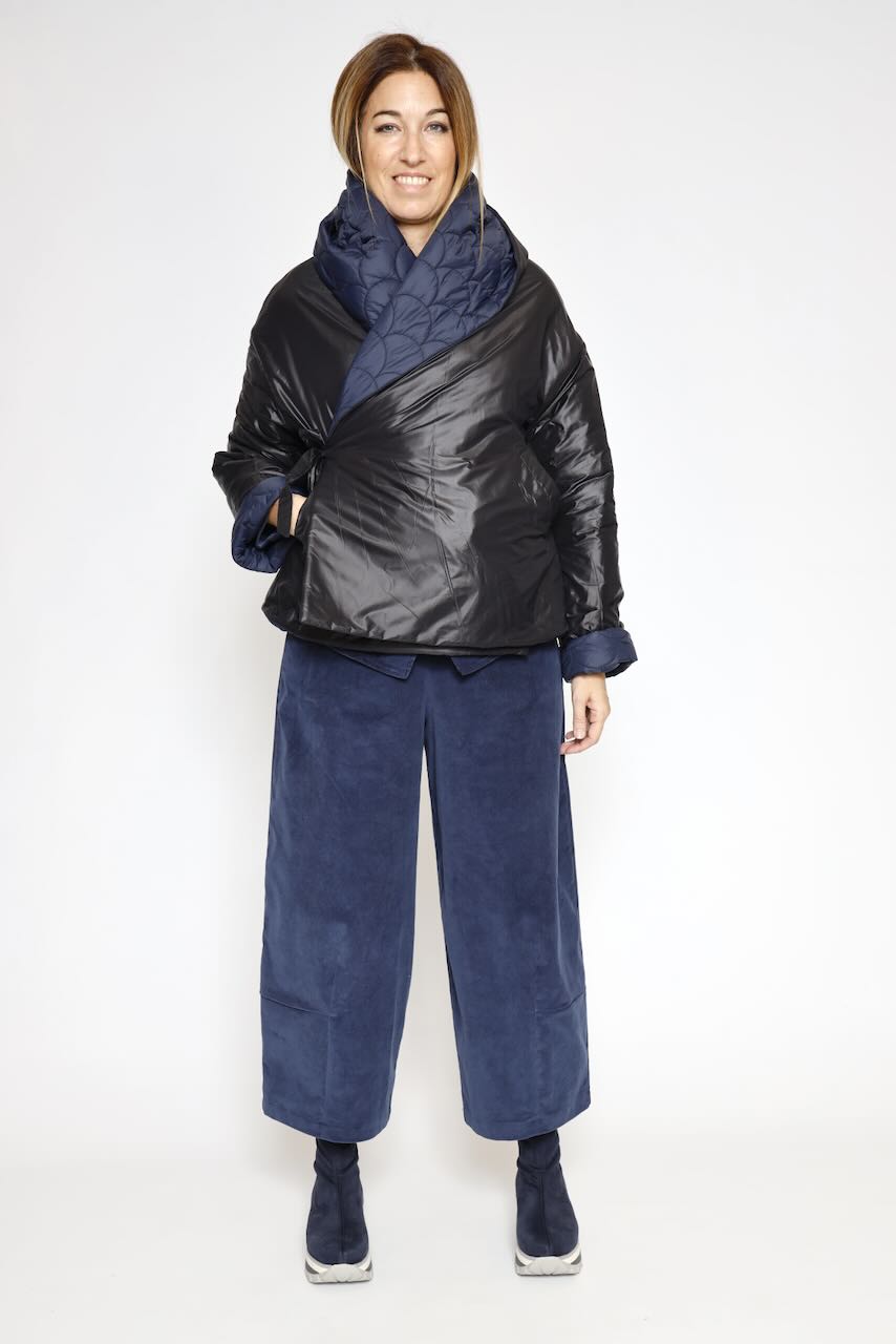 Esta chaqueta acolchada reversible en negro y marino es el complemento perfecto para tu guardarropa de invierno. Confeccionada con un 73% de poliéster, 19% de nylon y un 8% de polipropileno, esta chaqueta te mantendrá abrigado/a y con estilo en los días más fríos.