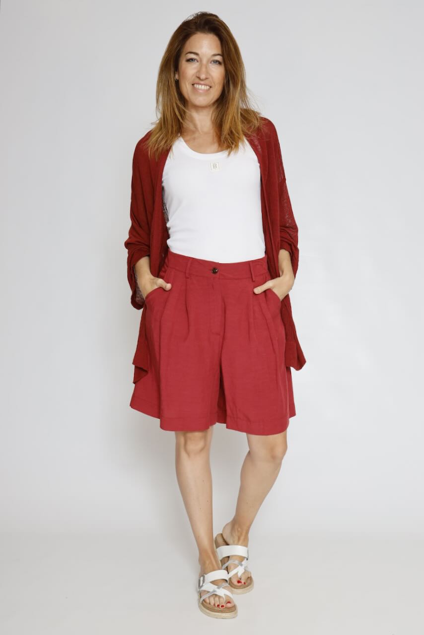 Esta prenda de vestir está confeccionada con un 90% de viscosa y un 10% de poliéster, lo que la hace suave y cómoda de llevar. Su color burdeos le brinda un toque elegante y versátil, perfecto para cualquier ocasión.