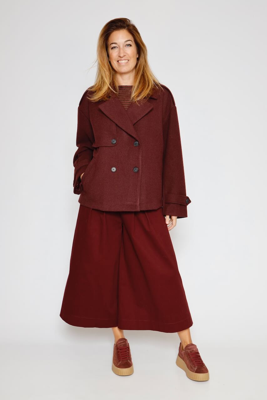 Esta chaqueta de color burdeos es perfecta para mantenerse abrigado y a la moda. Su diseño elegante la hace ideal para cualquier ocasión.