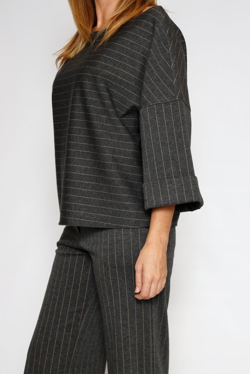 Pantalones de rayas de tiro alto y pernera ancha con cinturilla elástica y cierre frontal de cremallera y botón. Combínalos con la blusa a juego de nuestra colección para un look elegante y cómodo.