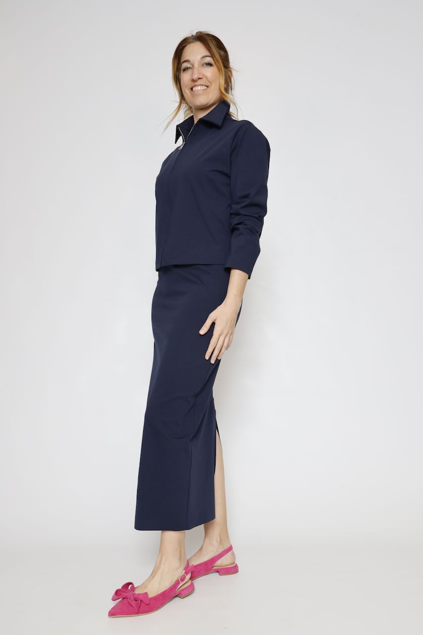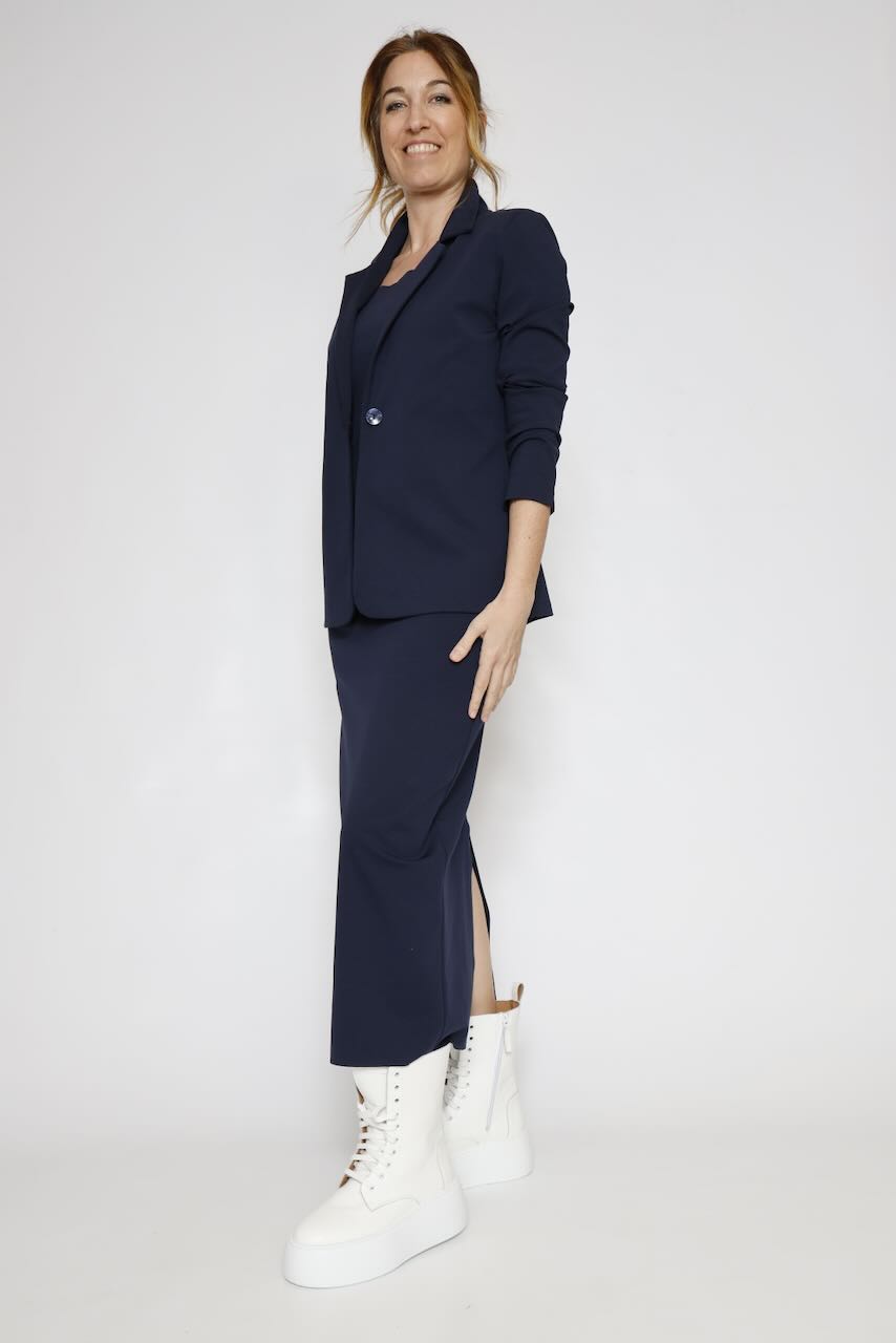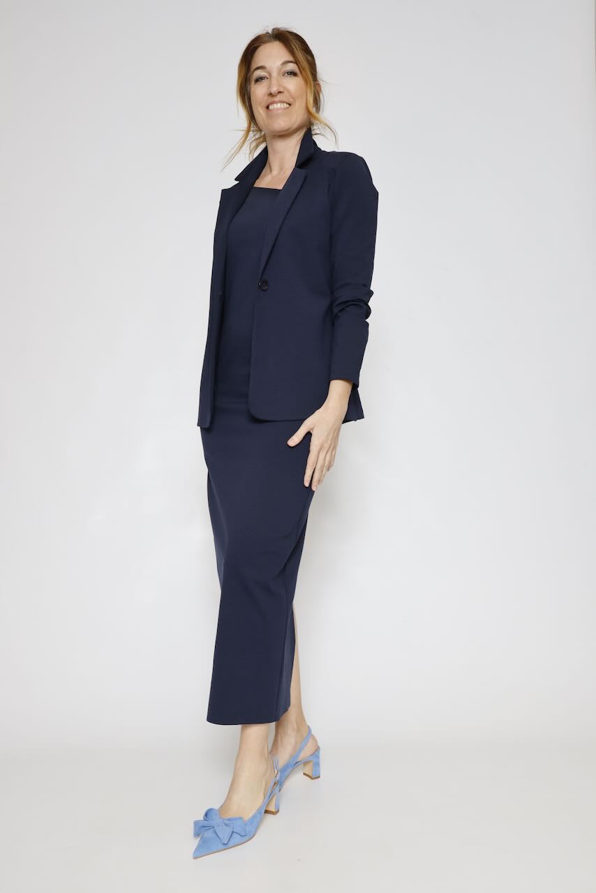 Este vestido de punto Milano en color marino es perfecto para un look casual y cómodo.
