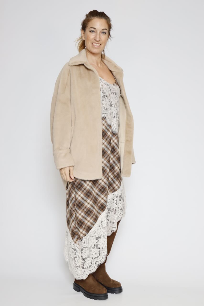 Vestido Asimétrico de Cuadros en Tonos Marrones y Encaje