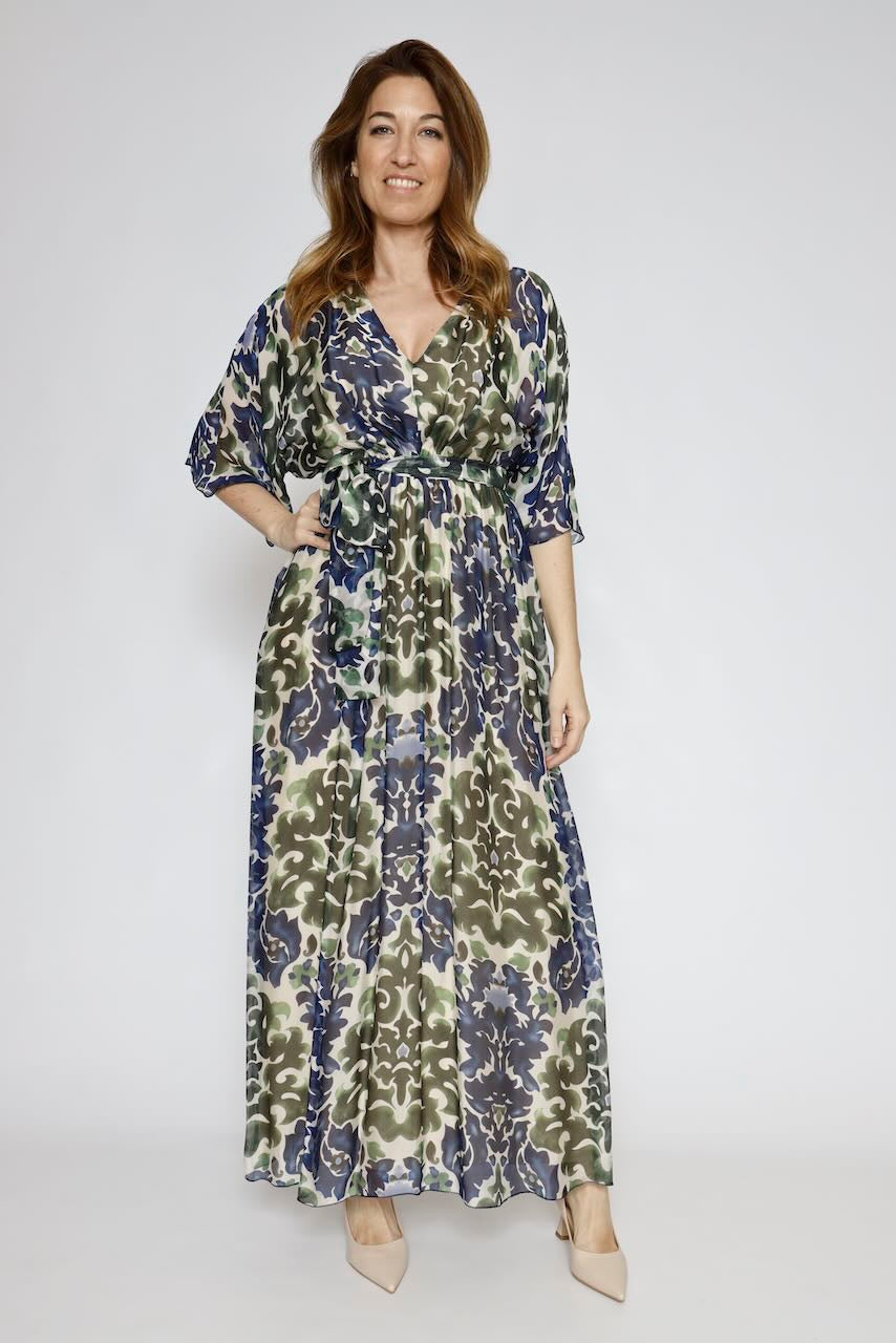 El artículo BY08205-VERDE está fabricado con un 70% de viscosa y un 30% de seda, proporcionando una combinación única de suavidad y elegancia.