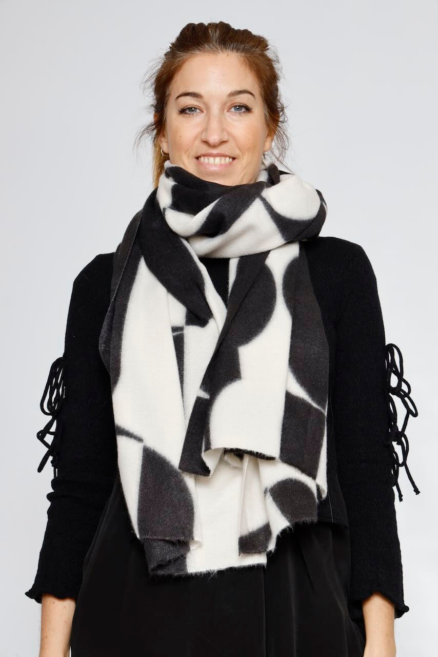 Descubre la elegancia y versatilidad de esta bufanda estampada en negro. Confeccionada en 100% viscosa, es perfecta para complementar tus outfits en cualquier ocasión.