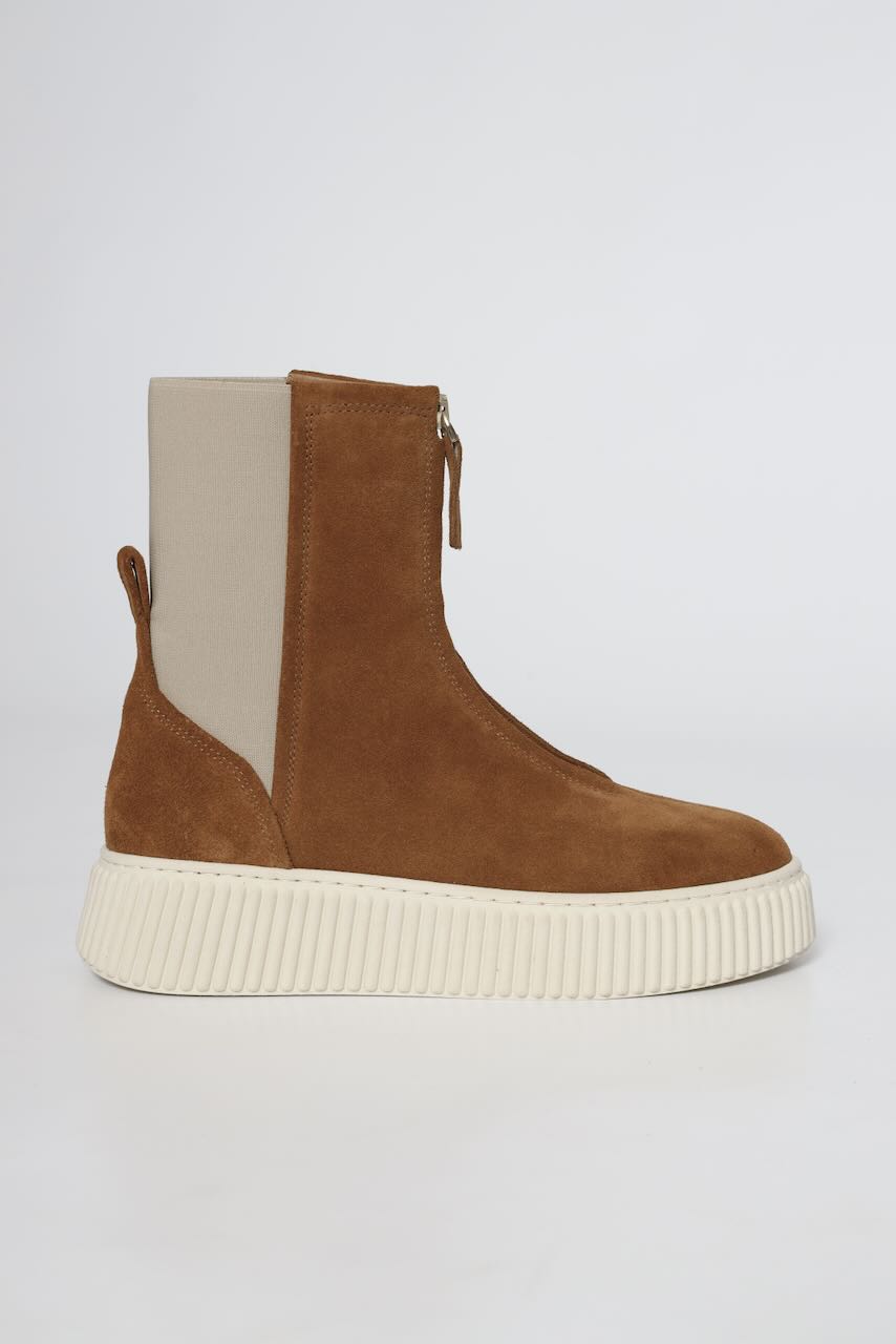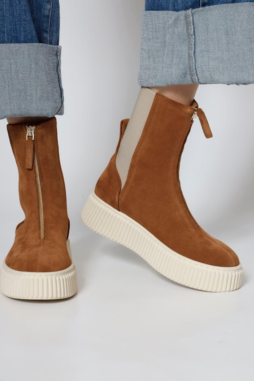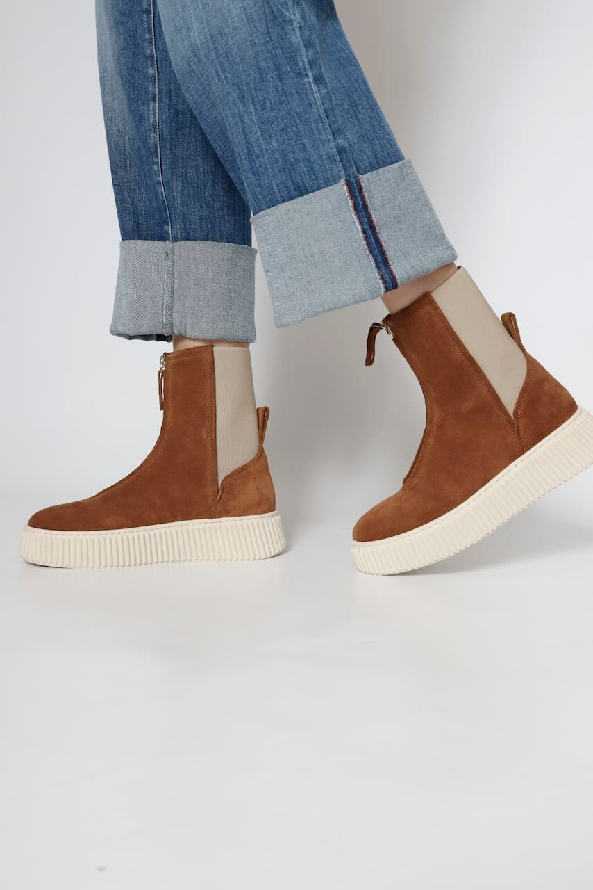 Este botín de piel ante en color camel es el complemento perfecto para cualquier ocasión. Su diseño atemporal y elegante te permitirá lucir sofisticada en todo momento.