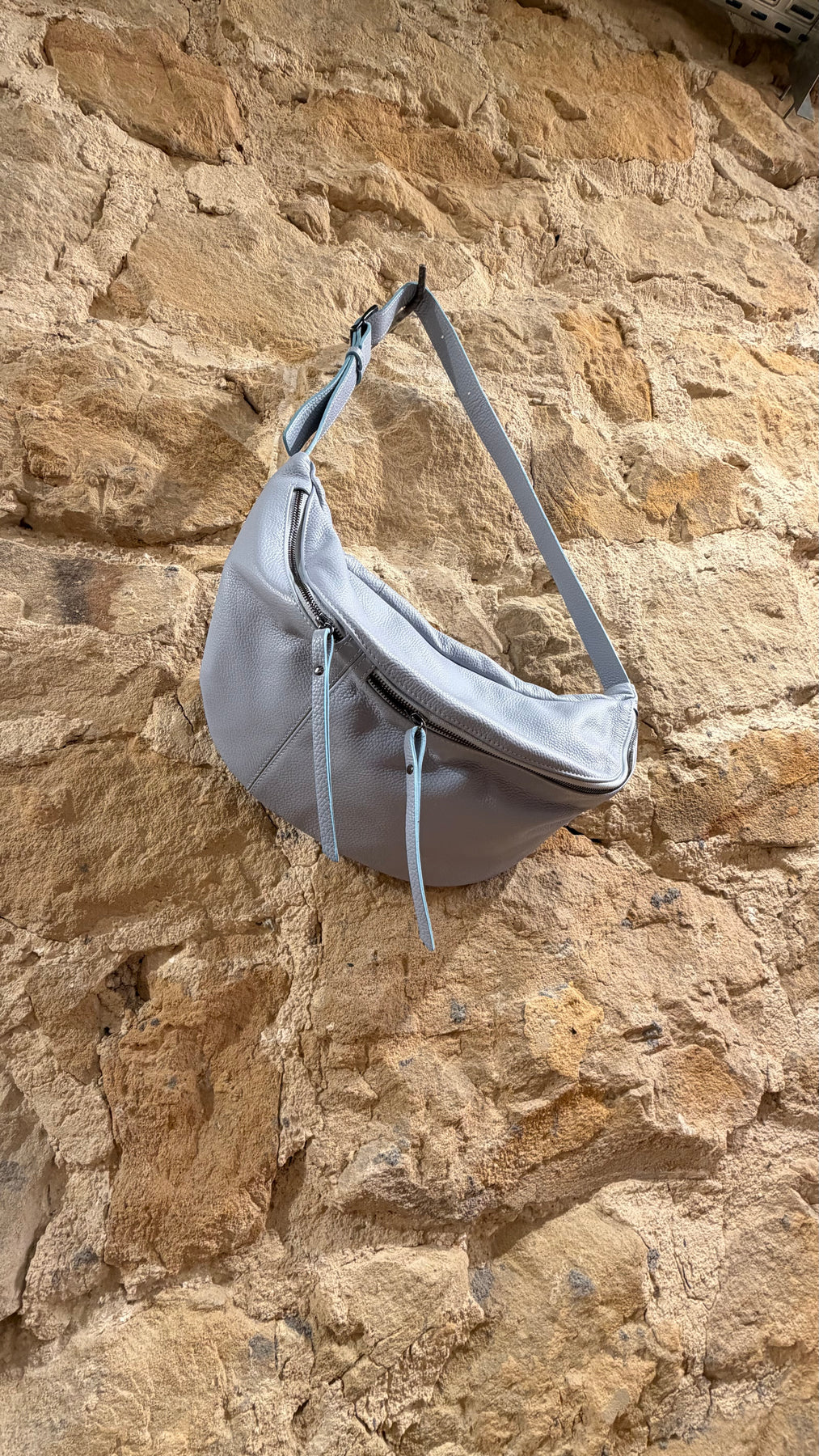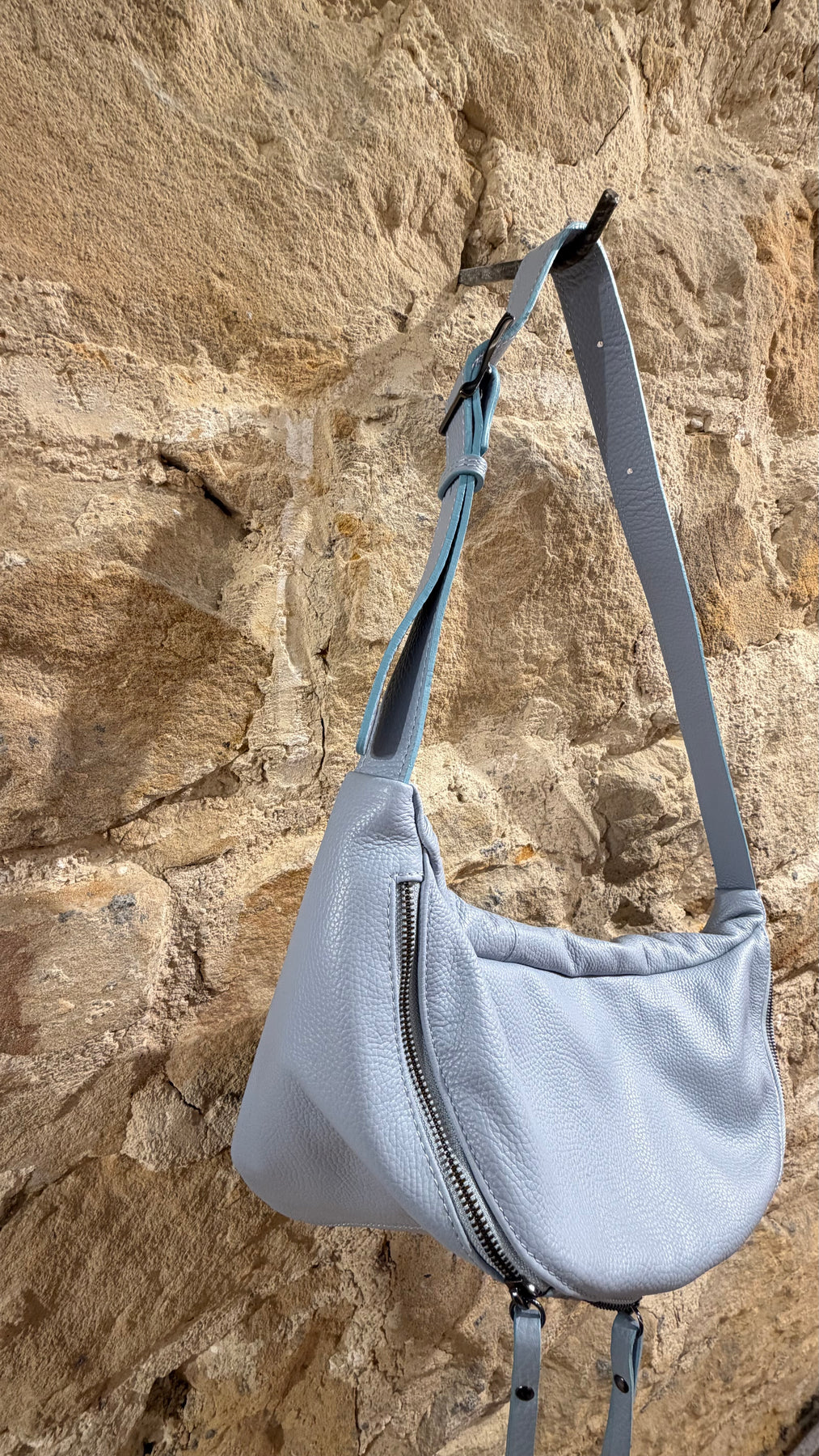 Bolso bandolera de piel con dos departamentos de cierre individual - 2136-AZUL CLARO