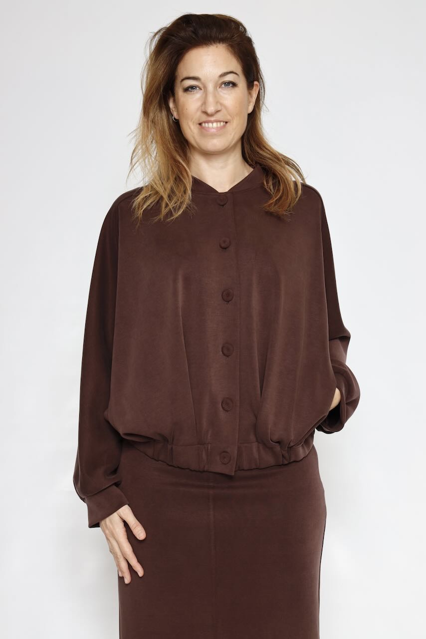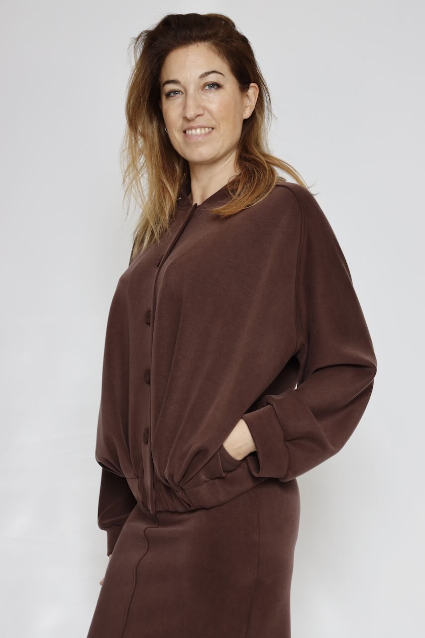 La Chaqueta Bomber BY09158 en color marrón es una prenda versátil y moderna que no puede faltar en tu armario. Confeccionada con un 44% de viscosa, 49% de poliéster y 7% de elastano, esta chaqueta te brinda comodidad y estilo a partes iguales.