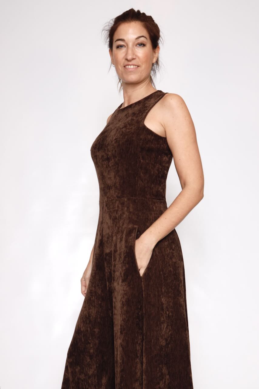 Confeccionado en terciopelo elástico, este buzo/mono largo es la combinación perfecta de comodidad y estilo.