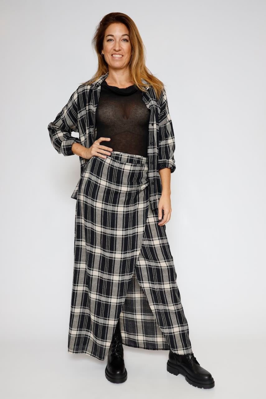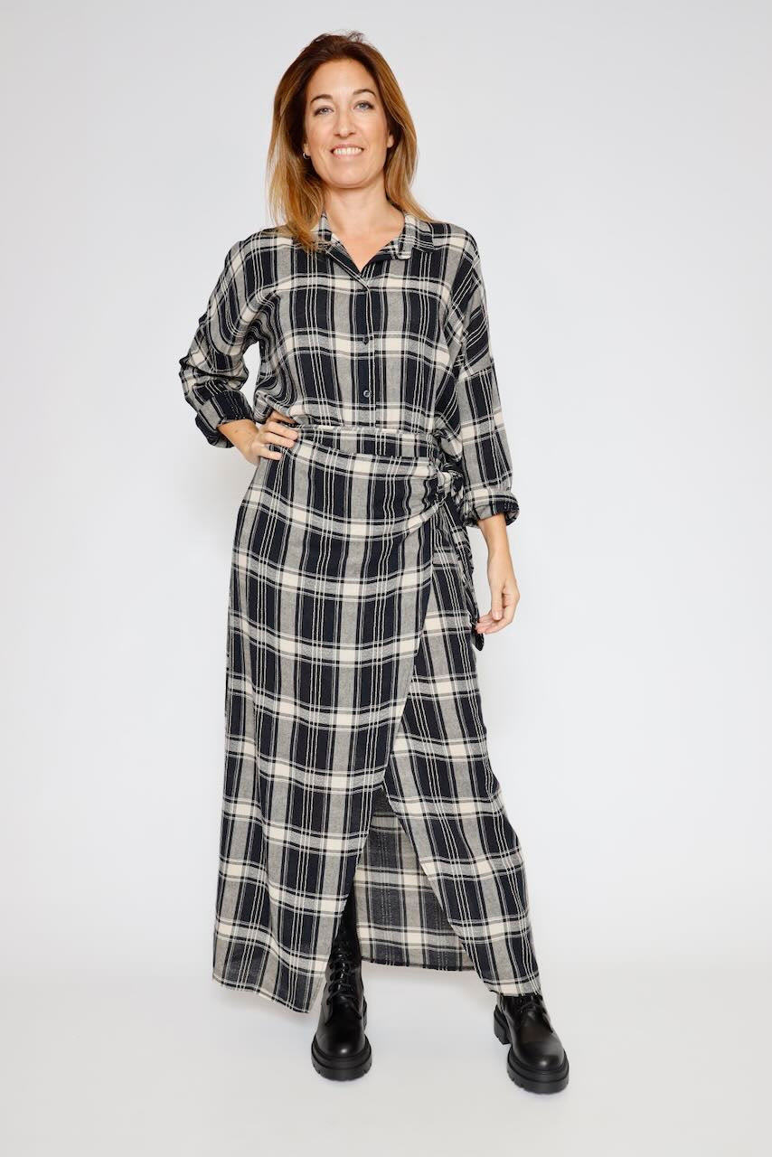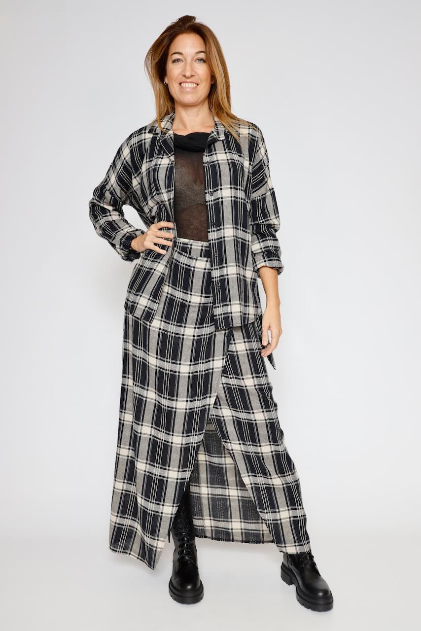 Camisa de cuadros en tonos marino y beige, ideal para cualquier ocasión.