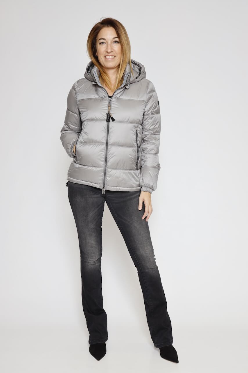 Esta chaqueta corta acolchada en color gris es la prenda perfecta para mantenerte abrigado y con estilo en los días fríos.