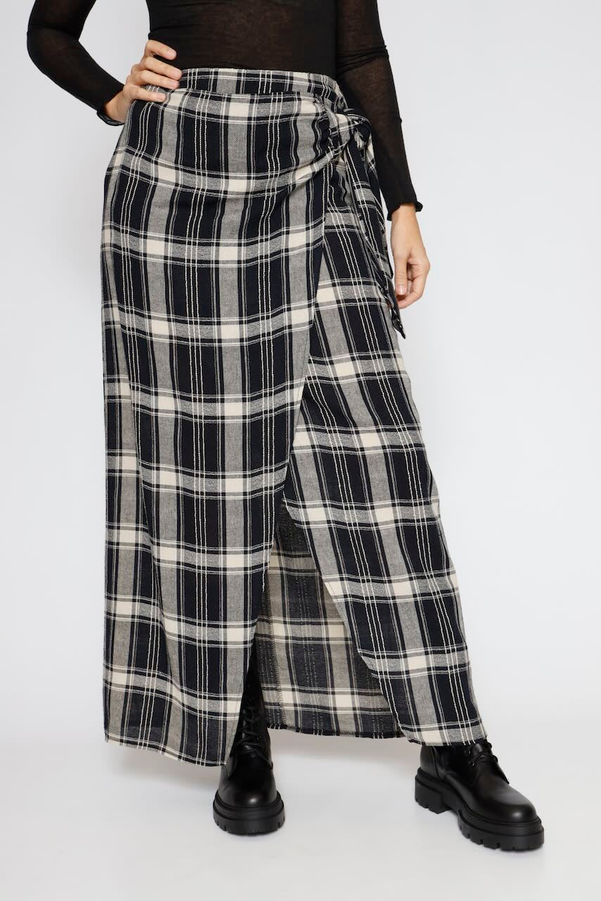 No te pierdas nuestra falda pareo en tonos beige y marino oscuro, ideal para lucir a la moda en cualquier ocasión.