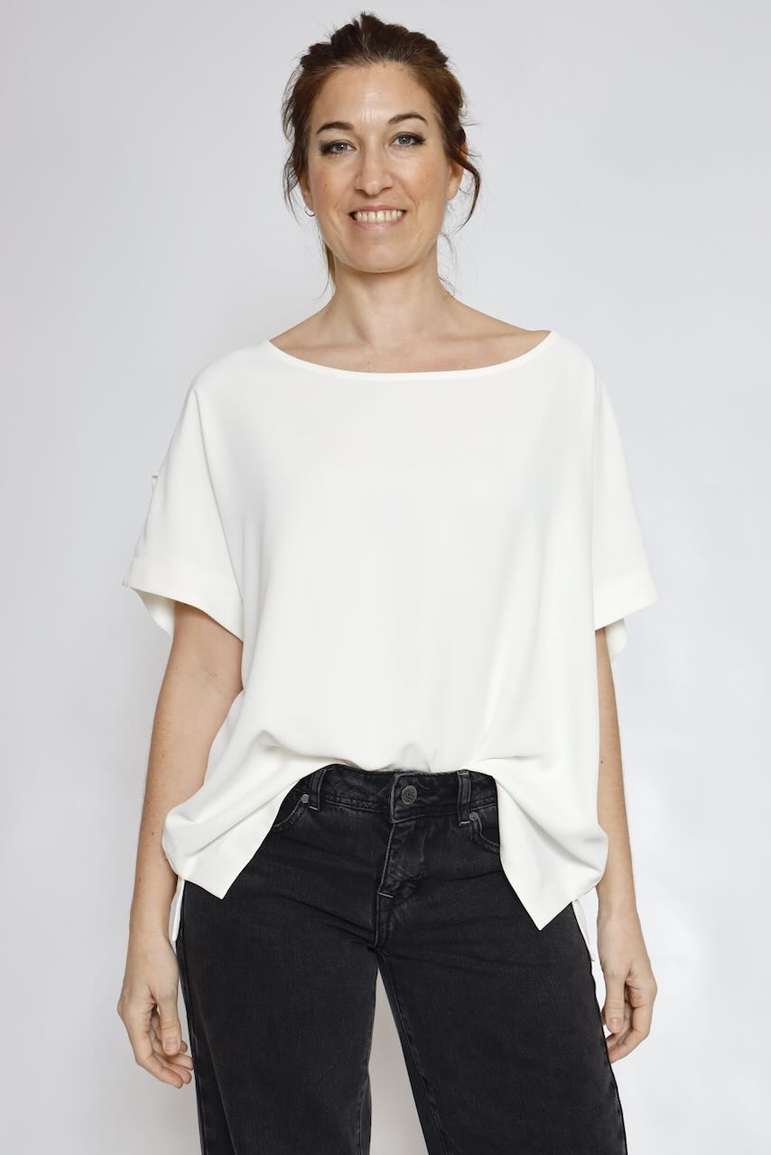 Esta elegante blusa cuenta con pliegues en la parte trasera de la manga, agregando un toque único y moderno a tu vestuario.