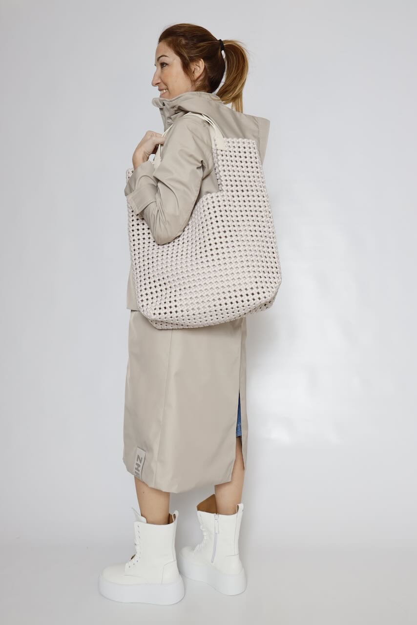 BOLSO HOMBRO COLOR LATTE CON NECESER INCLUIDO Y ASAS DE CUERO