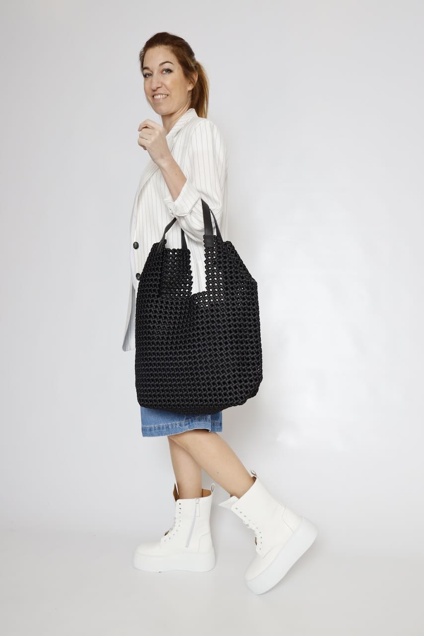 ¡Hazte con este elegante bolso de hombro negro con neceser de cuero para llevar tus cosas de forma cómoda y sofisticada!