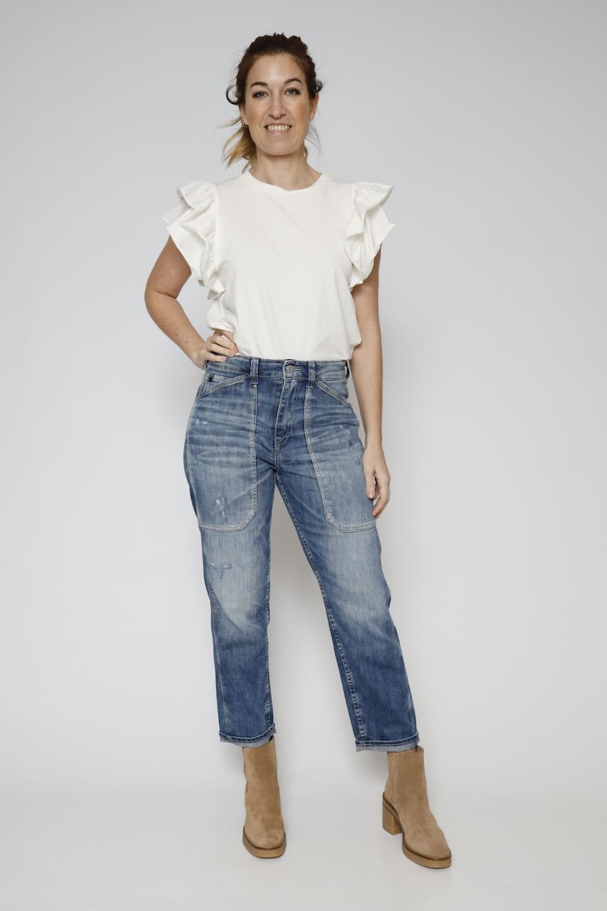 Esta camiseta Latte es la prenda perfecta para añadir un toque elegante y femenino a tus looks diarios. Con manga abullonada y doble volante, te hará lucir moderna y sofisticada en cualquier ocasión.
