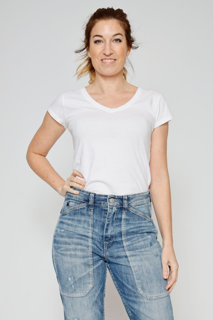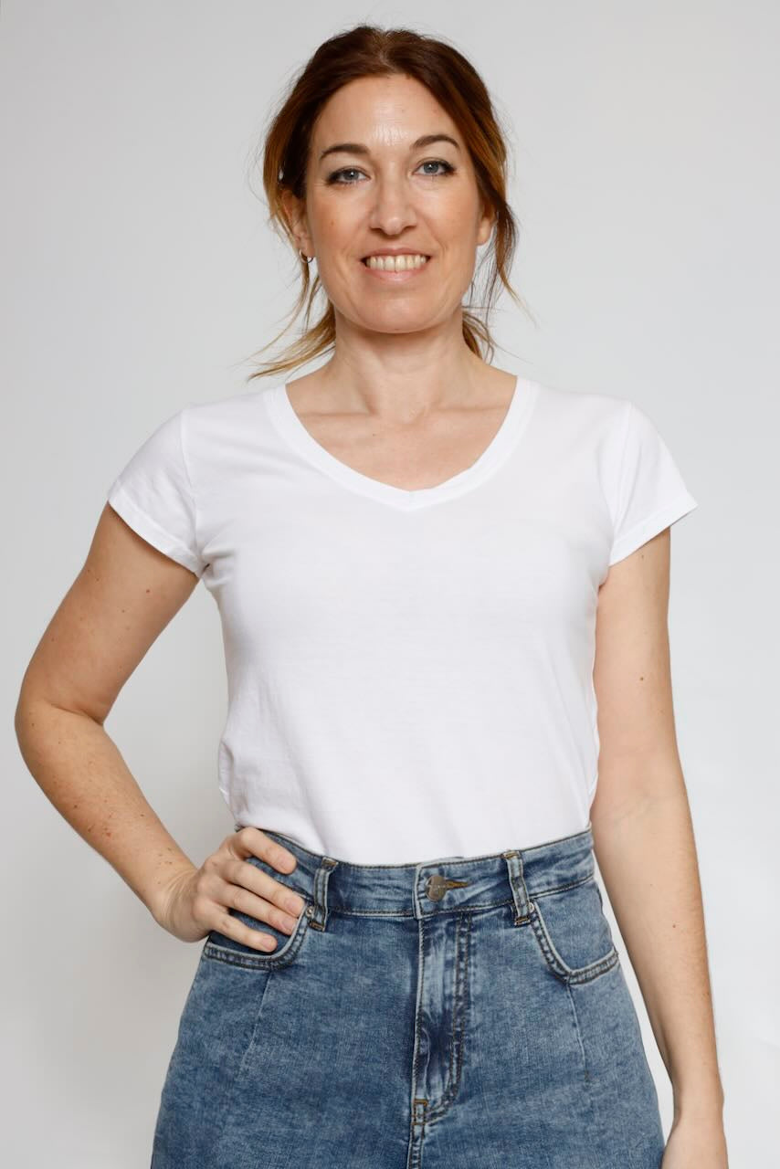 ¡Lleva esta camiseta de cuello en V de algodón a todas partes! Su diseño clásico y su material de calidad la convierten en la elección perfecta para cualquier ocasión.