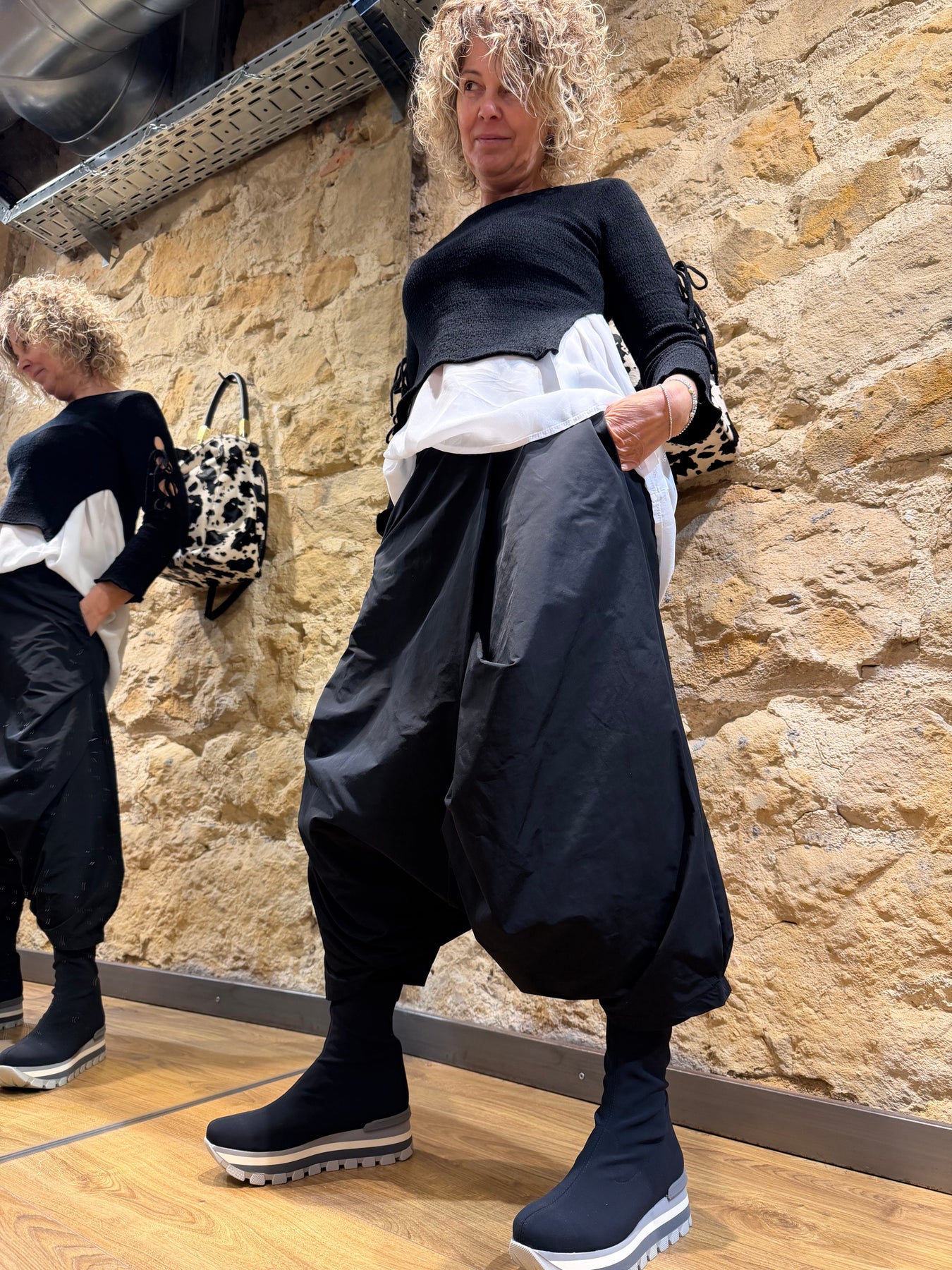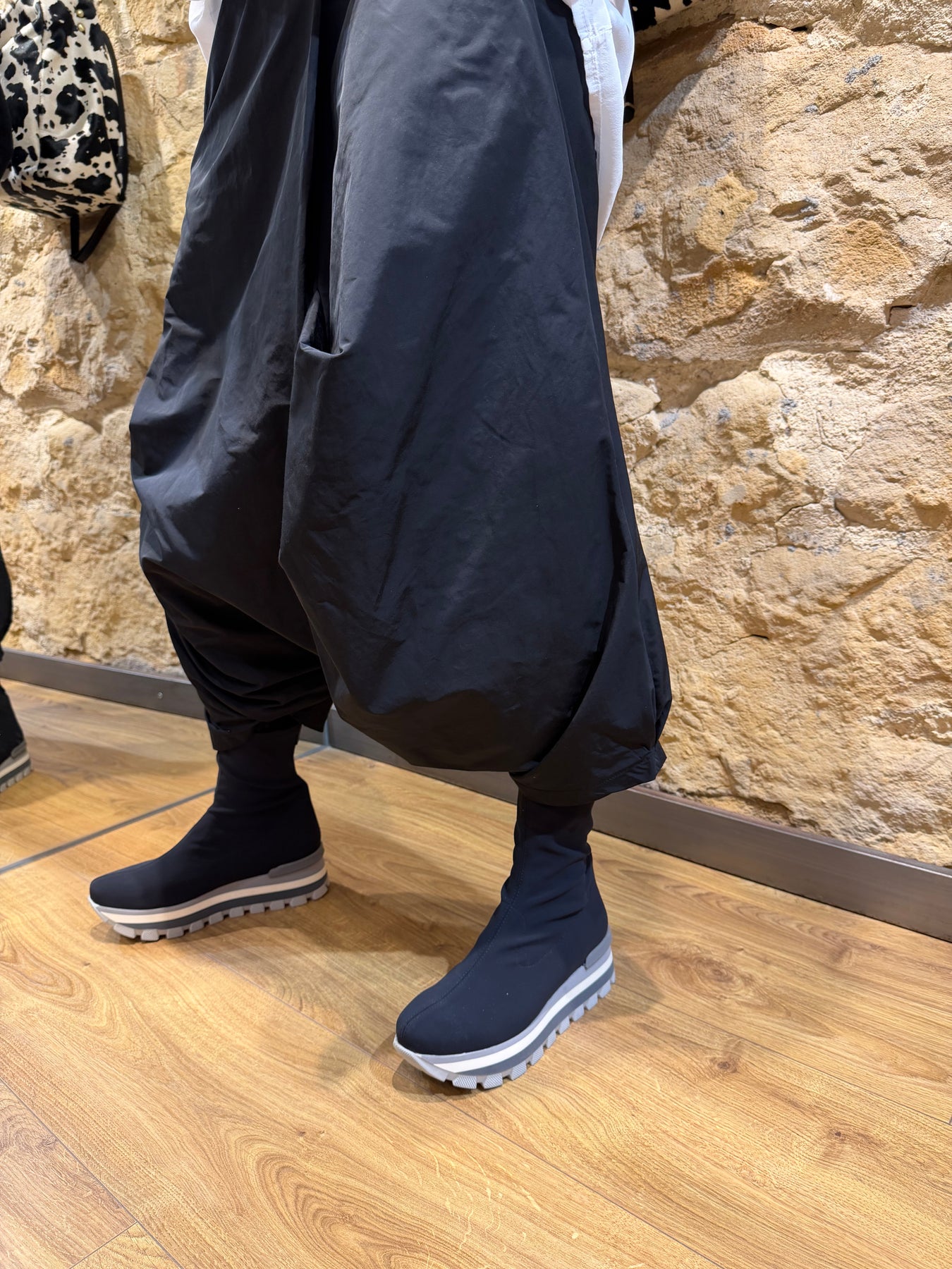 Esta falda pantalón está fabricada con un 58% de poliéster y un 42% de algodón, ofreciendo comodidad y durabilidad.
