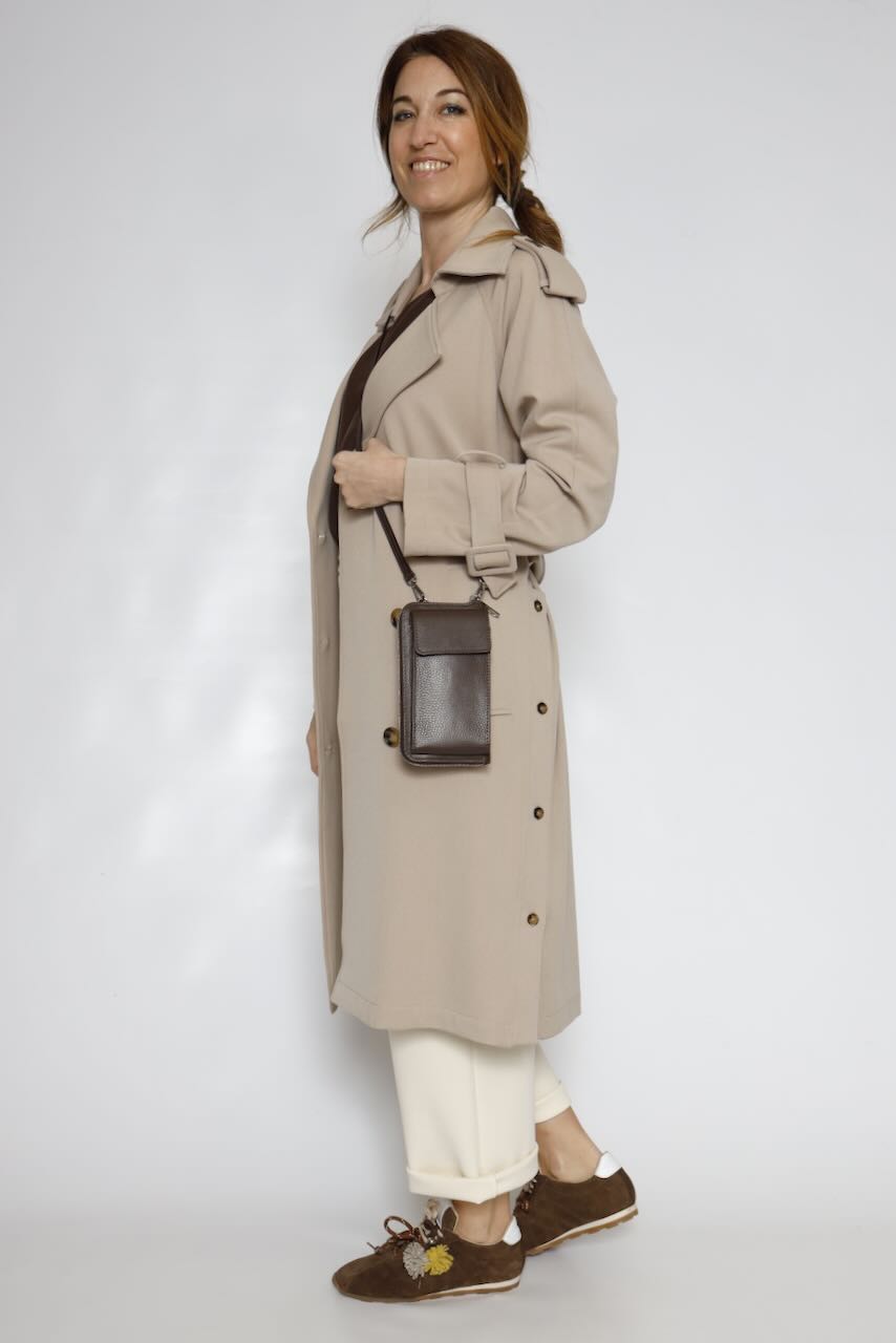Este mini bolso está confeccionado en piel de alta calidad, lo que le otorga durabilidad y un acabado elegante. Su color marrón combina fácilmente con cualquier conjunto, convirtiéndolo en un accesorio versátil para cualquier ocasión.