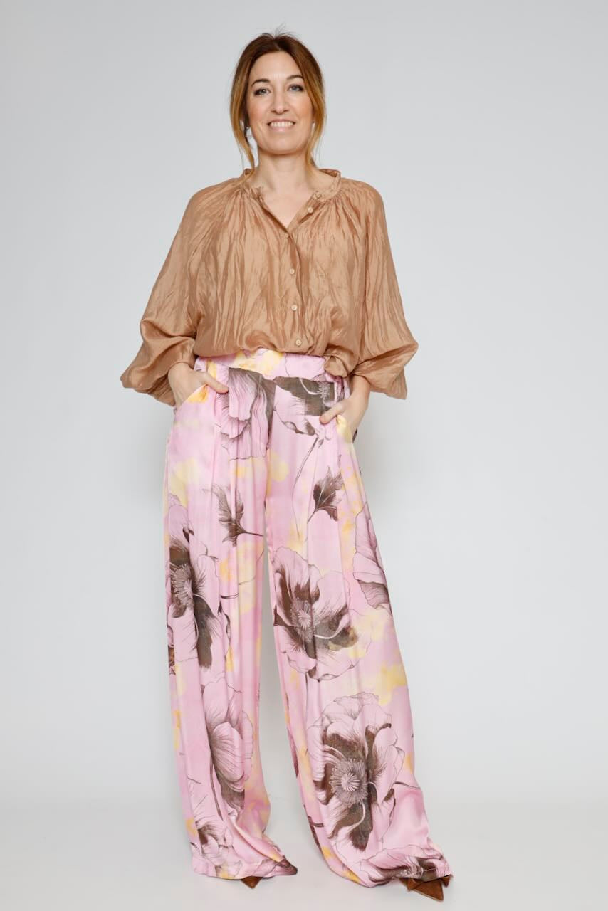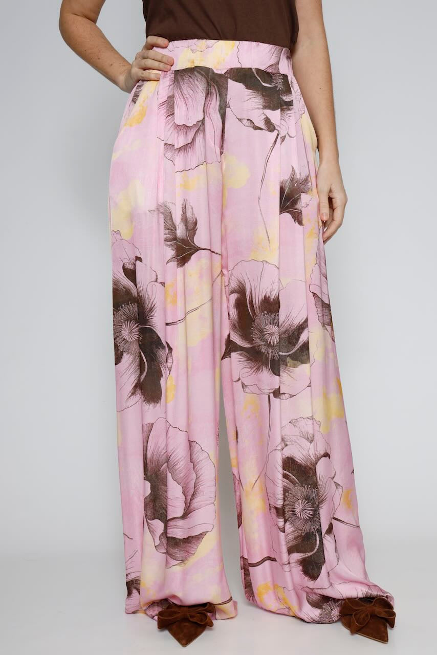 Este elegante pantalón de viscosa tiene un hermoso estampado de flores, perfecto para darle un toque de frescura y estilo a tu look.