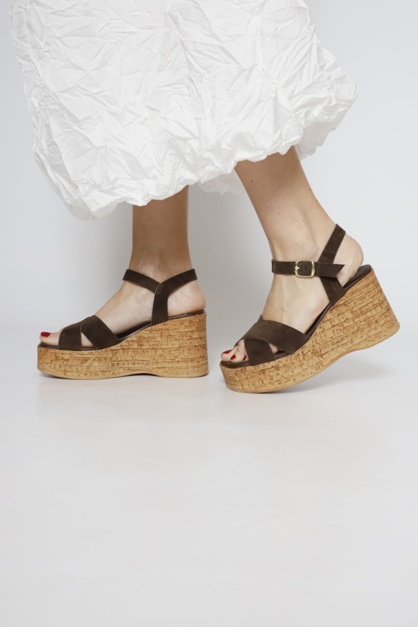 SANDALIA DE CUÑA ALTA COLOR CACAO
